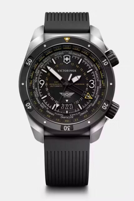 Navega tu día con la confianza que te da la precisión suiza en relojería, diseño innovador y funciones listas para el vuelo. El reloj Air Pro Automatic combina estilo clásico e ingeniería avanzada para asegurar la máxima funcionalidad. Las dobles coronas te permiten manejar 3 zonas horarias con precisión, y gracias a los índices luminiscentes en relieve podrás leer la hora de día o de noche. Afronta cualquier actividad gracias a la certificación ISO en resistencia al agua y a los golpes.
