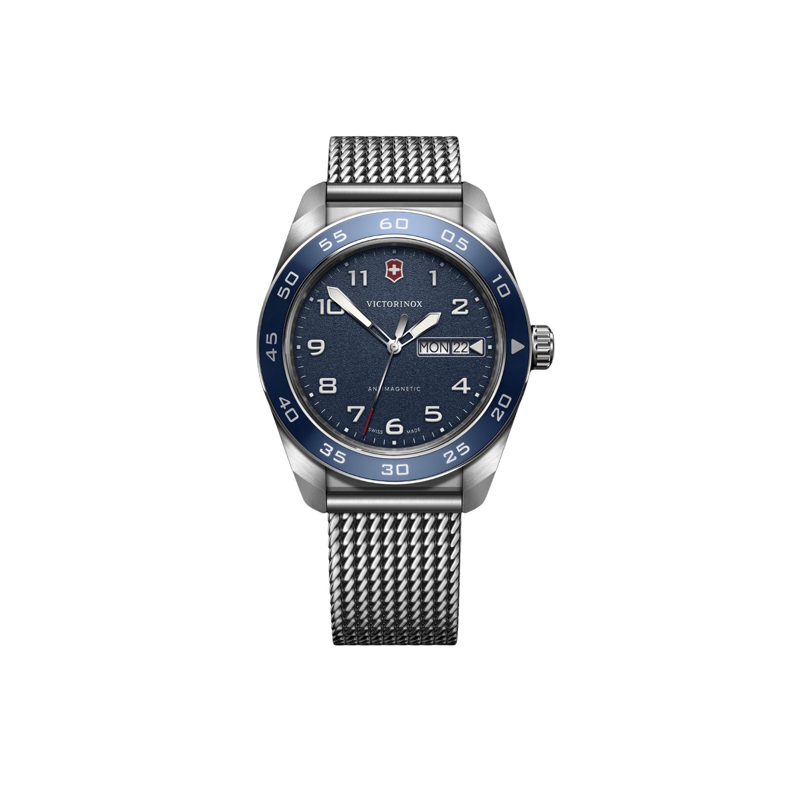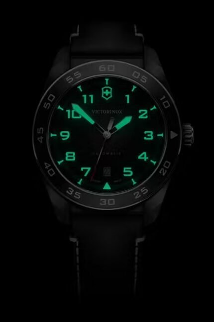 El Swiss Army Automático simboliza la tecnicidad en su más alto nivel. Funcional, pero con diseño, se adapta a varias tareas a la perfección. La esfera optimizada con numerales con relieve y manecillas grandes SuperLuminova® iluminadas aseguran fácil legibilidad las 24 horas. El movimiento automático de fecha Sellita SW200 fija el estándar de precisión. Su confianza inquebrantable simplifica tus desafíos diarios.