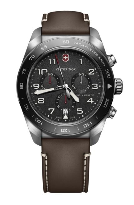 El Swiss Army Chronograph, con su diseño excepcional, rinde en cualquier condición exigente, y fusiona resiliencia y precisión inquebrantable. Cuenta con movimiento Ronda 5030.D de fabricación suiza, además de tres subesferas para cronometraje dividido, y es un maestro de la precisión. El taquímetro integrado en el bisel de acero inoxidable pulido rastrea distancia y tiempo de forma experta. El brazalete de malla ajustable permite personalizar el tamaño. Úsalo para seguir tu progreso en circuitos de gimnasio o para registrar el kilometraje global en vuelos.