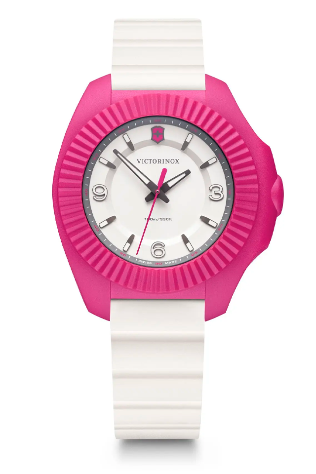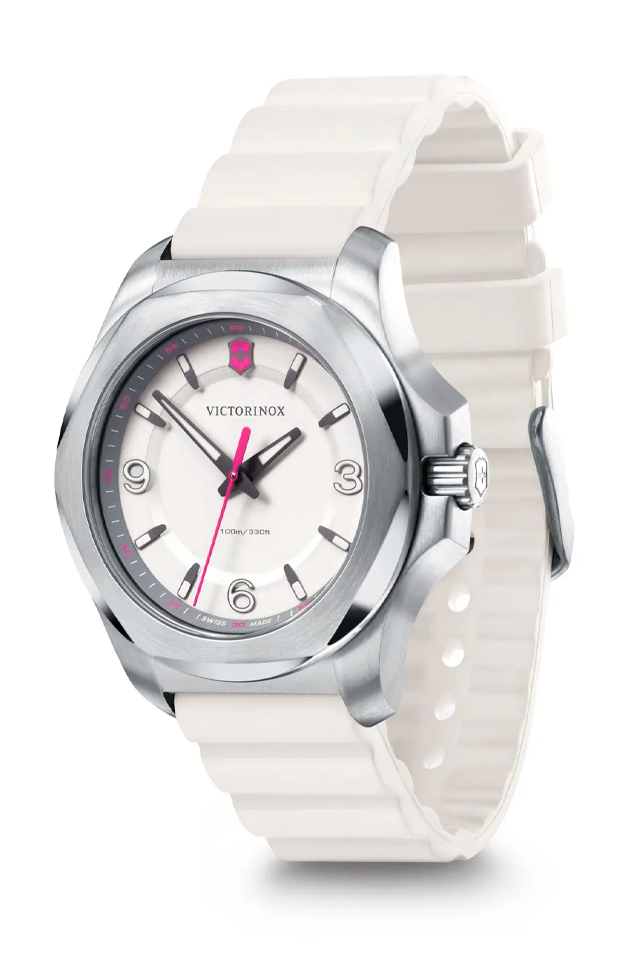 Presentamos lo último en relojes livianos y resistentes a la aventura: el INOXV Pensando en el futuro, funcional y hermoso en su forma, este reloj de fabricación suiza establece un nuevo punto de referencia en la relojería femenina. Tomando el audaz diseño icónico del INOX V original, lo reinventa para la mujer trotamundos más exigente. Con un peso 32 % más liviano y un 33 % más delgado, con una correa de goma resistente con un sistema de barra de liberación fácil para quitar y reemplazar la correa sin problemas, es una pulsera sin esfuerzo para ella.