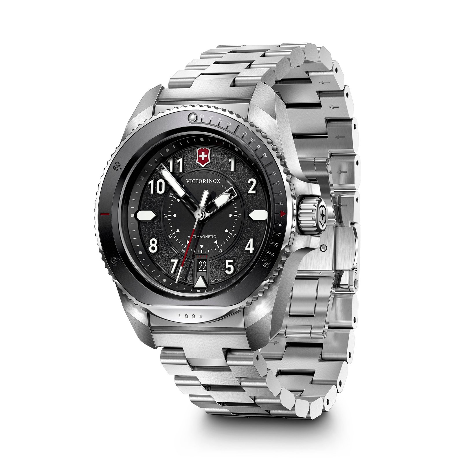 Inspirado en el amor de Suiza por el senderismo, el Journey 1884 combina a la perfección el espíritu del aire libre con su ADN de ingeniería. El contrapeso con influencia de Swiss Army Knife y el código de material grabado reflejan su herencia industrial, que se destaca por la fecha de fundación. Además, la resistencia antichoque y antimagnética garantiza la precisión. Los materiales de alta calidad, los detalles de diseño inteligente y las funciones innovadoras hacen de este su compañero ideal en la gran aventura de la vida.